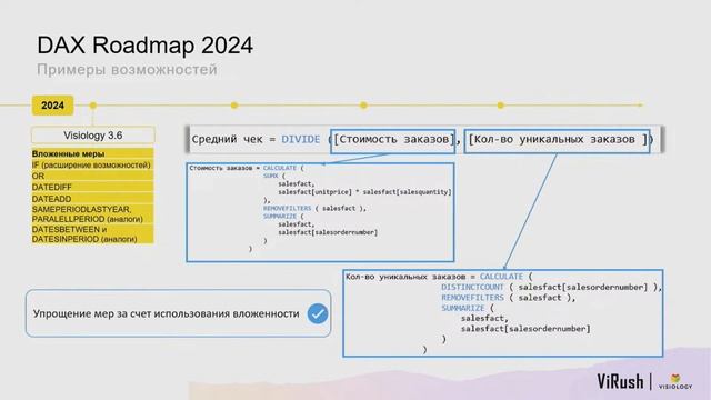 Product owner Visiology Анастасия Галковская выступает с докладом на ежегодной открытой конференции ViRush 2023. Таймкоды: 0:40 2023 год, интерфейс 3.0, интерфейс 3.5 1:07 Загрузка данных 1:31 Доступы 2:45 Совместная работа 5:28 DAX: Новые возможности вычислений 7:13 Самостоятельное расширение линейки поддерживаемых виджетов 7:55 Администрирование 8:08 Экспорт данных с виджета 8:28 Упрощение миграции 8:50 Smart Forms в Visiology 3 9:18 Все новые возможности 9:37 Планы на 2024 12:43 Dax Roadmap 2024 16:05 Наш Roadmap - это ваша обратная связь! 17:00 Ответы на вопросы