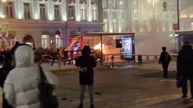 На Воздвиженке БМВ врезалась в автобус После удара легковушка загорелась, внутри остался водитель