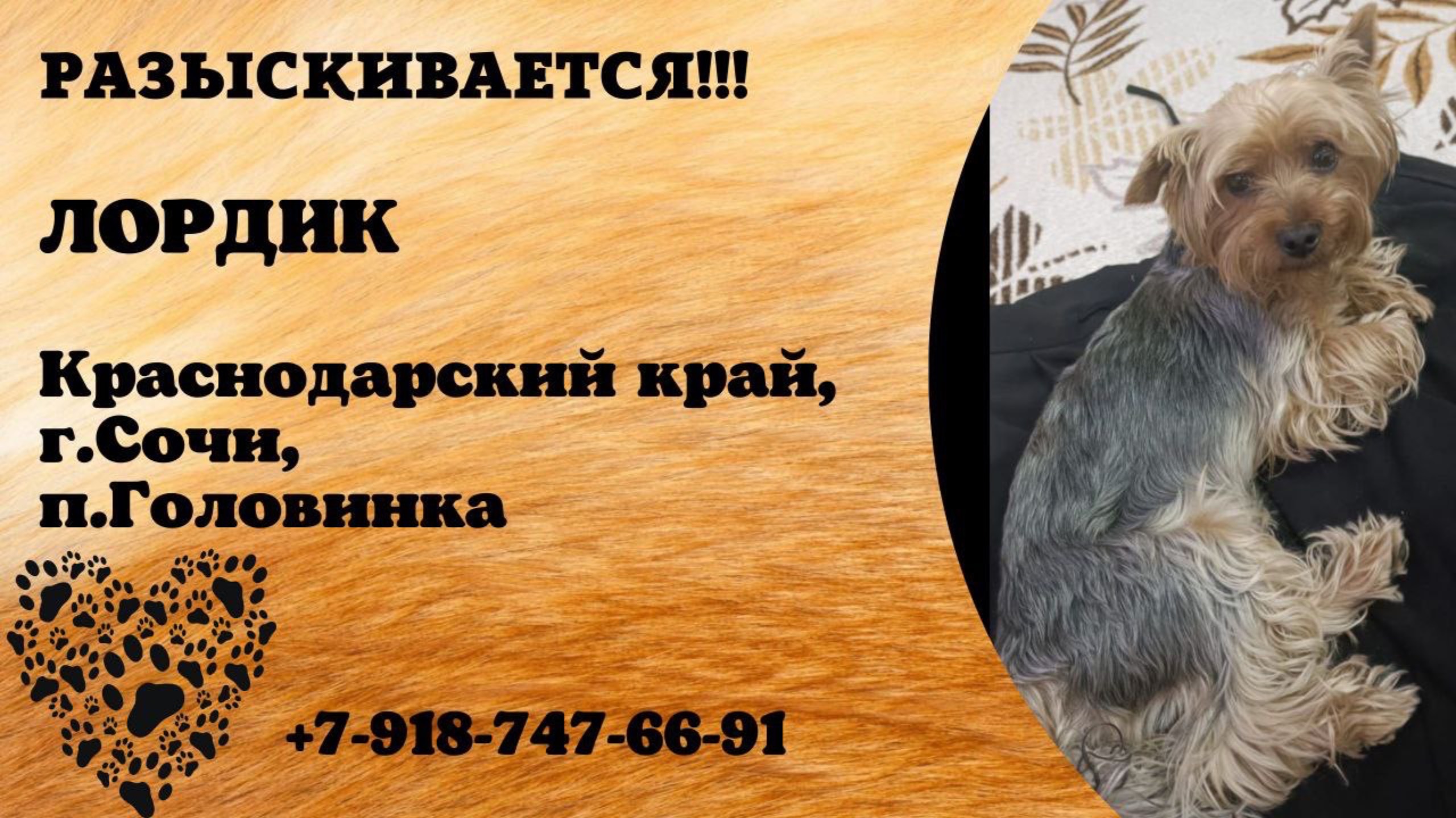 Пропала собака! ЛОРДИК. Краснодарский край, г.Сочи.