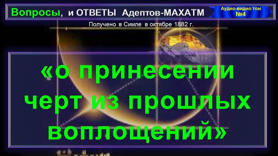 (4) О ПРИНЕСЕНИИ ЧЕРТ ИЗ ПРОШЛЫХ ВОПЛОЩЕНИЙ (1882)- из серии Вопросы и ОТВЕТЫ Адептов-МАХАТМ