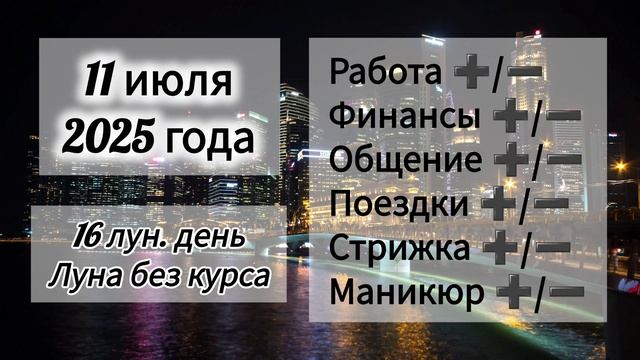 Лунный день 11 июля 2025 года