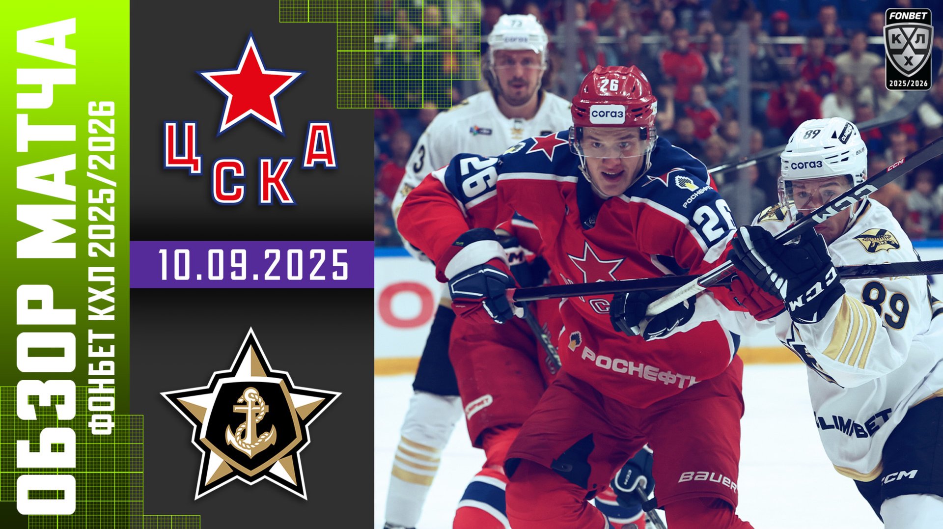 ЦСКА – АДМИРАЛ | Обзор матча Фонбет КХЛ сезон 2025/2026 | 10.09.2025