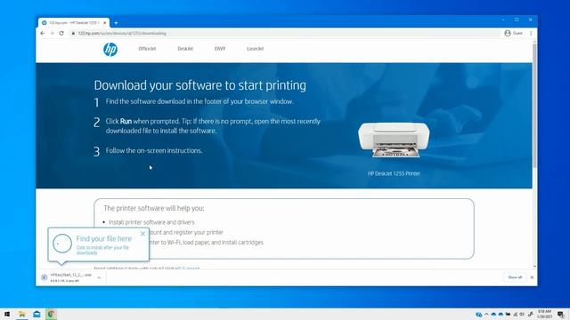 在启用 Windows 10 的设备上使用 USB 设置 HP DeskJet 1255 打印机系列 | HP Smart | HP Support