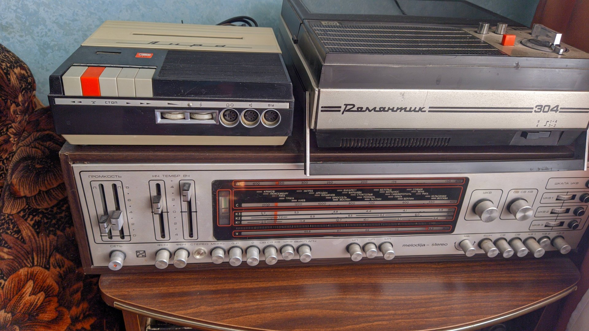 Коллекция магнитофонов и радиоприемников.