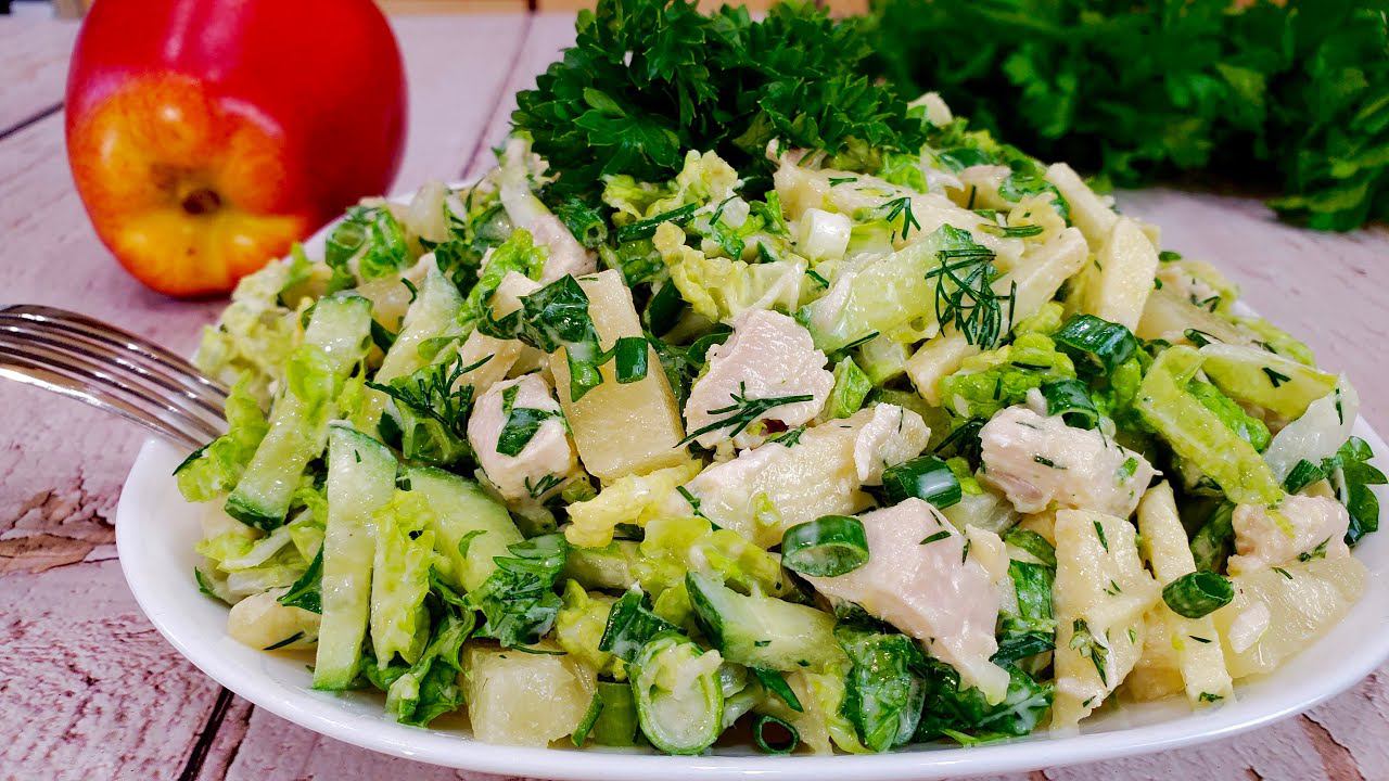 Вкусный и легкий. Подходит на каждый день так и для любого праздника. Приятного аппетита Рецепт находится ниже! Вот еще рецепты на моем канале: Пасхальная выпечка: https://www.youtube.com/playlist?list=PL1W8GF9fLda8iJPQ6KaA4ZVtLQzG33_LO Выпечка: https://www.youtube.com/watch?v=6BL2LbloIKM&list=PL1W8GF9fLda_T30ct1Lw7YXGrurE54xVv Вкусные домашние салаты: https://www.youtube.com/playlist?list=PL1W8GF9fLda9cDO1SecY3sIBpv6sL0ORg Вторые Блюда- Вкуснотища!!!! https://www.youtube.com/playlist?list=PL1W8GF9fLda_BBETZNesepFCE_uFXD8hl Закуски: https://www.youtube.com/playlist?list=PL1W8GF9fLda9X-bWGQwhEBsYDEWldOl-1 Десерты без выпечки: https://www.youtube.com/playlist?list=PL1W8GF9fLda-vMQzLvCIshN3opNY-EPjK Вкусные и простые рецепты: https://www.youtube.com/playlist?list=PL1W8GF9fLda_KIaVzKS-2EBkMtzUMFueD Торты без выпечки: https://www.youtube.com/playlist?list=PL1W8GF9fLda9-VD4fEMTSLzOe5j5ZNT2S Приготовление домашнего майонеза без яиц https://www.youtube.com/watch?v=LxjCZoeRyRA Приготовление домашнего майонеза с яйцами https://www.youtube.com/watch?v=UrBP8Uptdp0 *********************************** https://www.instagram.com/tomarasovety Подписывайтесь на мой канал Яндекс Дзен: zen.yandex.ru/domashniyerecepty Моя страница в Facebook: https://www.facebook.com/profile.php?id=100015455193201 ВКонтакте: http://vk.com/club121552141 Однокласники: https://ok.ru/profile/576139838700 ********************************************************************. РЕЦЕПТ: РЕЦЕПТ: отварная курица 200 гр. свежие огурцы 200 гр. кислое яблоко 200 - 230 гр. зеленый лук 30 гр. консервированные ананасы 150 гр. петрушка 20 гр. укроп 20 гр. майонез, соль по вкусу по вкусу меленый черный перец по желанию