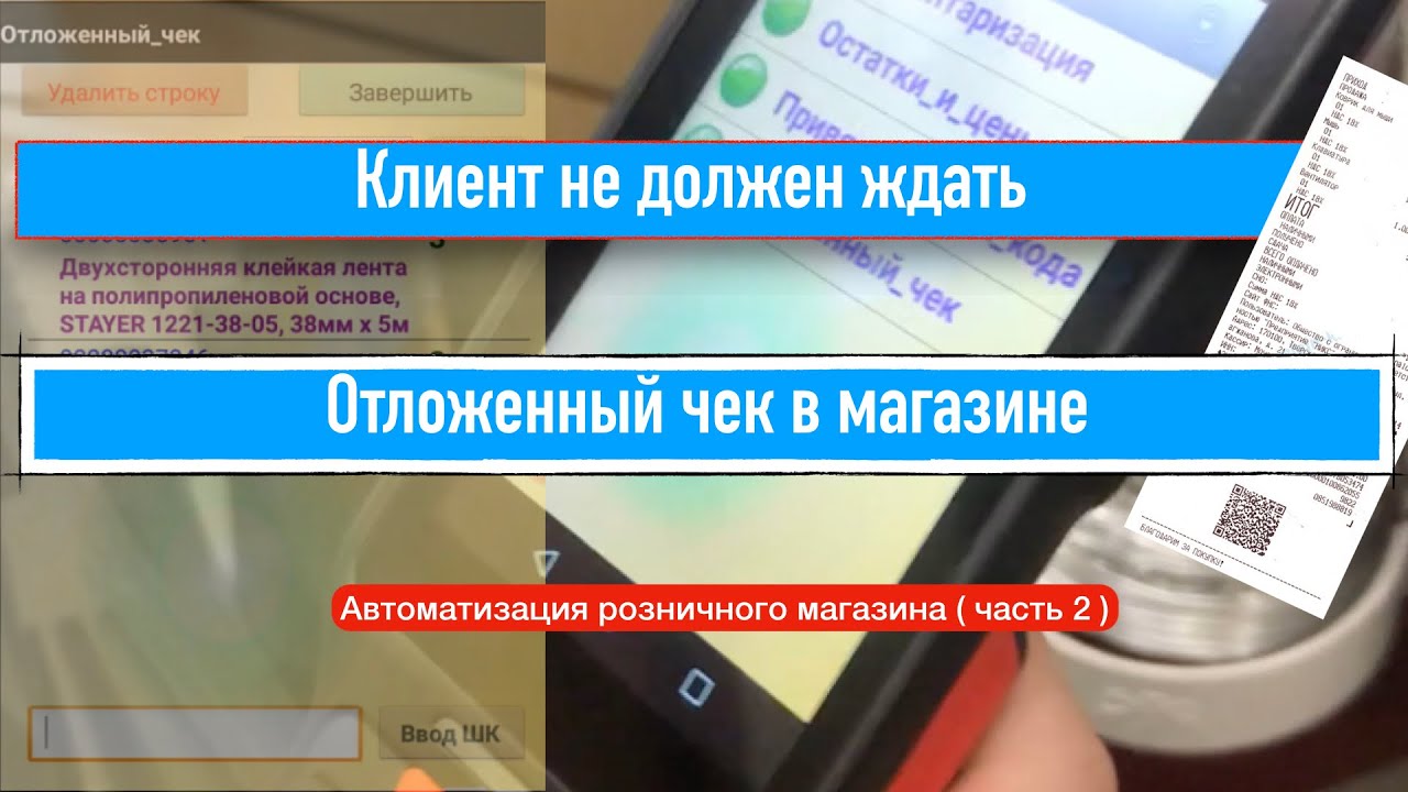 Предыдущее видео описывающее работу со штрих кодами в магазине: https://youtu.be/Xs_BFwfeMJI В рамках автоматизации сети розничных магазинов был внедрен механизм формирования отложенного чека в 1С с терминала сбора данных или телефона. AllegroSoft - канал об автоматизации бизнеса ★Автоматизация магазина и склада, работа с маркировкой. ★Загрузка данных на ТСД из 1с. ★Ускорение комплектации и сбора заказов на 50%. ★Ускорение инвентаризации склада на 70%. ★Возможность автоматизации “ручных” процессов на складе/магазине. Заходите, смотрите и подписывайтесь на канал! Мы в интернете: ➧ Сайт - https://allegrosoft.ru/ ➧ Landing Page - https://sznak.ru/ ➧ Почта - info@allegrosoft.ru ➧ Телефон - +7 (499) 213-02-73 Наш канал: https://www.youtube.com/channel/UC-nZetl2JpigBRnS9rdmObQ