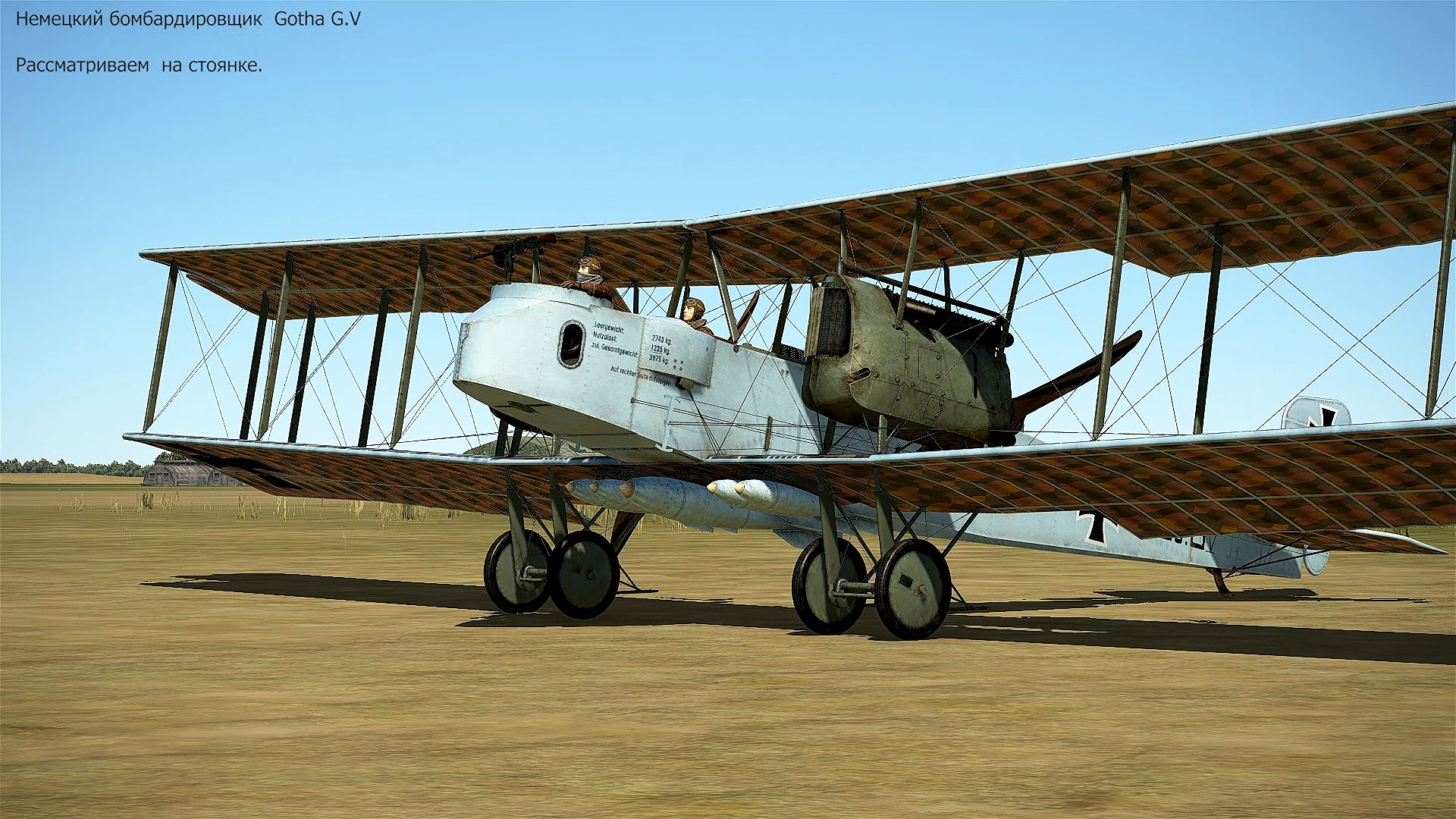 Gotha G.V. Немецкий бомбардировщик. Симулятор Flying Circus - I, II. Рассматриваем на стоянке.