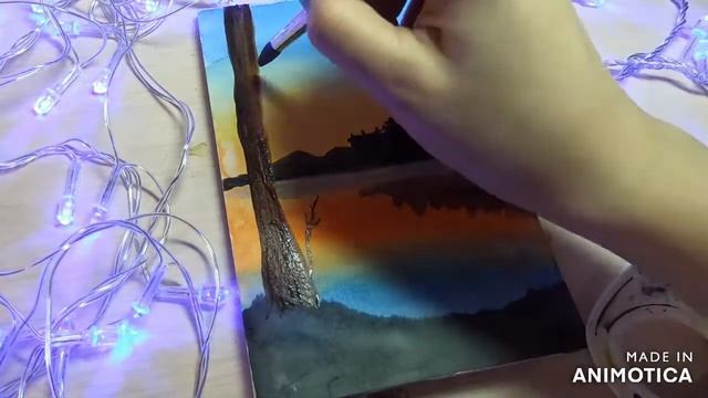 Рисуем пейзаж... После заката, вечер, роспись, дизайн, холст, акварель, уроки рисования