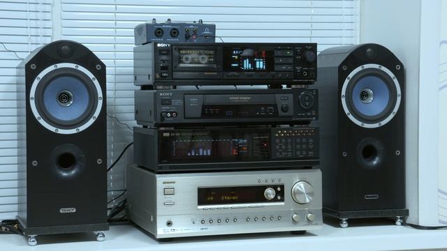 Музыкальный комплект из очень стильной, красивой, высокого качества звучания кассетной деки SONY TC-RX80 , VHS стерео видео магнитофона SONY (он используется исключительно для звука), красивого эквалайзера с анализатором спектра со съёмным дистанционным пультом SANSUI , ресивера ONKYO и акустическими системами фирмы TANNOY.