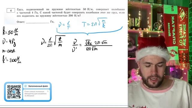 Груз, подвешенный на пружине жёсткостью 50 Н/м, совершает колебания с частотой 4 Гц - №21210