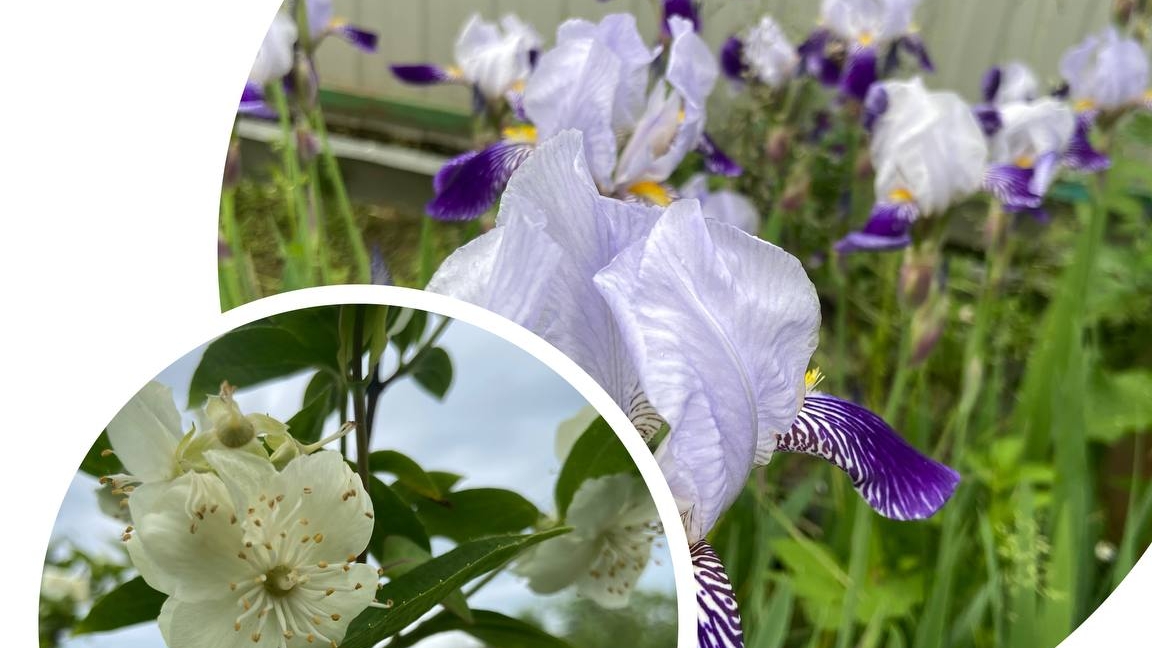 Ирисы и жасмин цветут