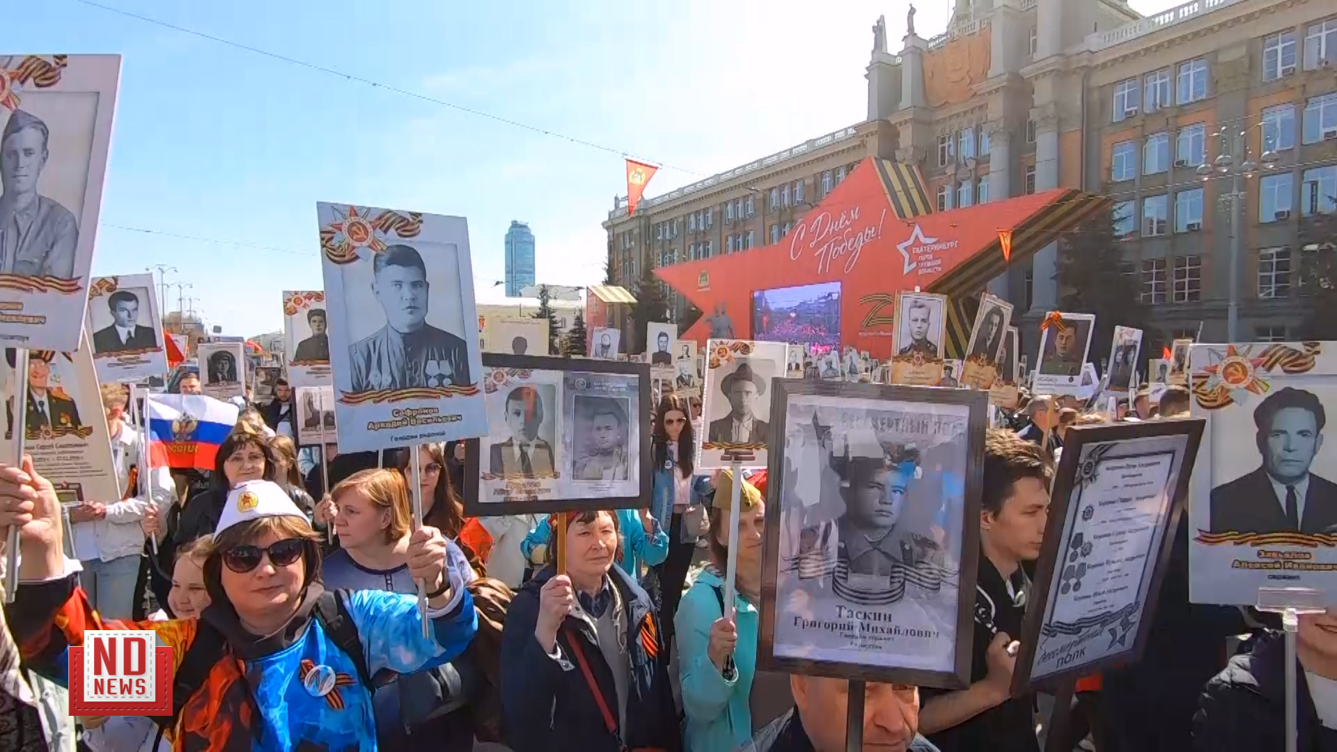 9 мая 2022 года. 9 мая в Екатеринбурге на площади 1905 года состоялась акция «Бессмертный полк», в которой приняли участие более 100 тысяч екатеринбуржцев. Движение памятной колоны продлилось почти час. Подробнее – https://newdaynews.ru/ekaterinburg/758491.html