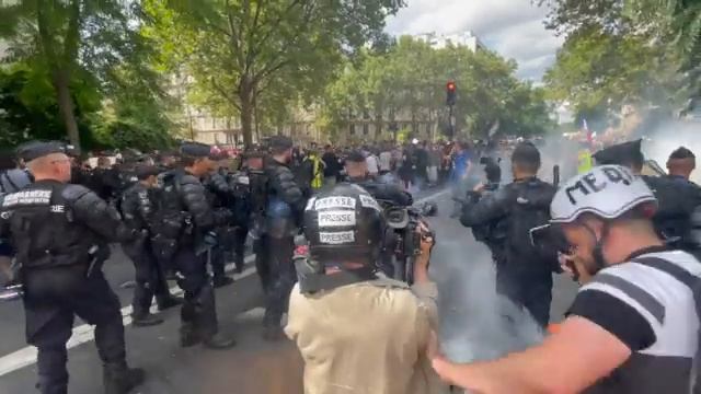 Ещё жёсткие кадры из Парижа. Митинги продолжаются.
