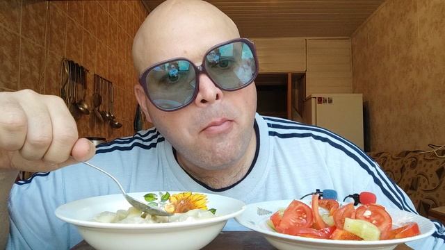 ОБЖОР пельмени с майонезом и салат из овощей/обед
