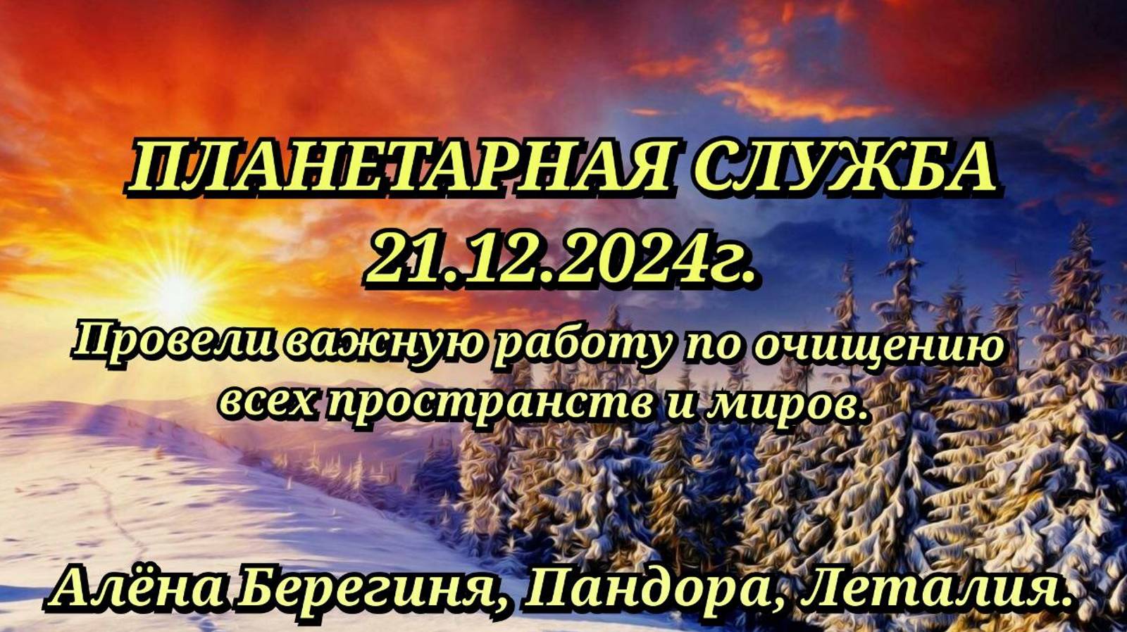 ПЛАНЕТАРНАЯ СЛУЖБА 21.12.2024г. Очищение всех миров и простанств от негативной энергии.