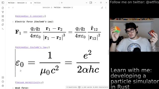 - GitHub: /luksquaresma/mol_sim - Twitter: @wtflks Chapters: 00:00 Presentation 04:51 Introduction: Theoretical background 05:04 Introduction: Scientific thinking 09:12 Introduction: Problem solving 11:38 Systems in computational modeling 20:15 Why so much introductions? 21:02 Atoms 28:14 Atomic interactions 36:15 Atomic bonding 37:45 Thermodynamics for atoms and molecules 52:54 Molecular stability, vibration and temperature 56:34 Molecular polarity 01:00:00 Molecular interactions 01:00:07 Atomic and molecular interaction strengths