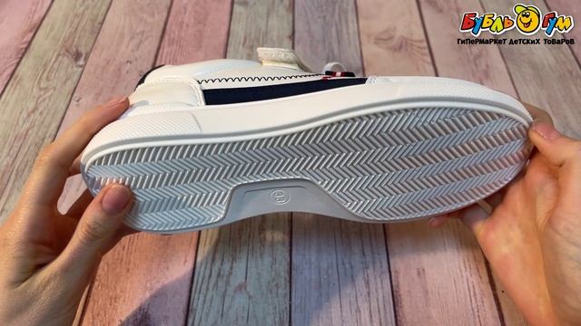 331909 Туфли TIBURON на липучке со строчками и темно-синими вставками белые