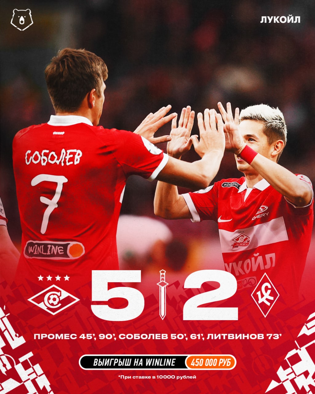 Московский "Спартак" в матче двенадцатого тура первенства РПЛ одержал на своём поле крупную волевую победу над "Крыльями Советов" со счётом 5:2 Дубли на свой счёт записали Александр Соболев и Квинси Промес, ещё один мяч в ворота соперника забил Руслан Литвинов.