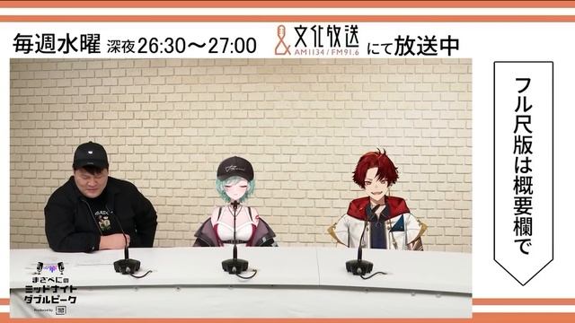 2024年3月6日(水)に放送した「まざべにのミッドナイトダブルピーク」第23回のディレクターズカット版をチョイ出し。 過去放送を含めたフル尺版は、下記のオンデマンドサイトで視聴可能です! http://qrpf8.com ■番組詳細🦍💄 番組名:タイトル:まざべにのミッドナイトダブルピーク 番組概要:Riot Gamesが手掛けるシューティングゲーム『VALORANT』界の美女と野獣?コンビの、MOTHER3さんと八雲べにさんが、『VALORANT』の魅力を発信したりしなかったりするラジオ番組です。 放送日時:毎週水曜日26時30分~27時00分 放送媒体:文化放送 FM91.6&AM1134 ※東海ラジオ、Radiko.jpでも聴取できます。 番組メールアドレス:midnightdoublepeek@joqr.net ■GUEST🦍💄 ・柊ツルギ(Neo-Porte) Twitter:https://twitter.com/HiiragiTsurugi YouTube:@HiiragiTsurugi Twitch:https://www.twitch.tv/hiiragitsurugi/about ■MC🦍💄 ・MOTHER3(REJECT) Twitter:https://twitter.com/mother3rrd YouTube:@MOTHER3rd Twitch:https://www.twitch.tv/mother3rd ・八雲べに(ぶいすぽっ!) Twitter:https://twitter.com/beni_yakumo YouTube:@yakumo_beni Twitch:https://www.twitch.tv/yakumobeni ■CHANNEL SPONSOR🦍💄 ・WD_BLACK(Western Digital) 世界中のゲーマーに向けて豊かなゲームプレイ体験を提供するウエスタンデジタルのゲーミングストレージブランド”WD_BLACK”。WD_BLACKのストレージで、スムーズで高速なゲームプレイを体験してみませんか。 公式サイト:https://www.westerndigital.com/ja-jp/... ・GALLERIA(ガレリア) PCゲームの魅力を最大限に引き出し、プレイヤーの可能性を広げることを目指すゲーミングPC。高いパフォーマンスが要求されるPCゲームを、より多くの人が楽しめるよう、最新パーツを採用した4シリーズと豊富なモデルをご用意しています。 公式サイト:https://galleria.net/ ■CHAPTER 0:00 オープニング(VCT Pacificの話題) 2:26 ZETAのハーバー(2コン構成)が気になるMOTHER3 4:10 髪を切ったべに様 6:21 ゲストの「柊ツルギ(Neo-Porte)」登場! 8:28 「VCR GTA2」初対面でMOTHER3にぶん殴られた話 10:27 デビューして間もなく葛葉・釈迦とコラボした時の心象 11:47 手厳しいコメントとの向き合い方 13:00 配信が終わったら自分の配信を見返す柊ツルギ 14:52 VALORANTのランクは“イモータル”-使うエージェントは… 15:48 GTA配信で伸びる人と伸びない人の違い 18:10 ふつおた(とろーりトロールさんからのお便り) 19:05 MOTHER3は根性系の面白おじさん 20:26 八雲べにはセクシー路線系の人 22:34 全 員 お バ カ 24:04 この続きはオンデマンドサイトから! #まざべにダブピ #柊ツルギ #valorant