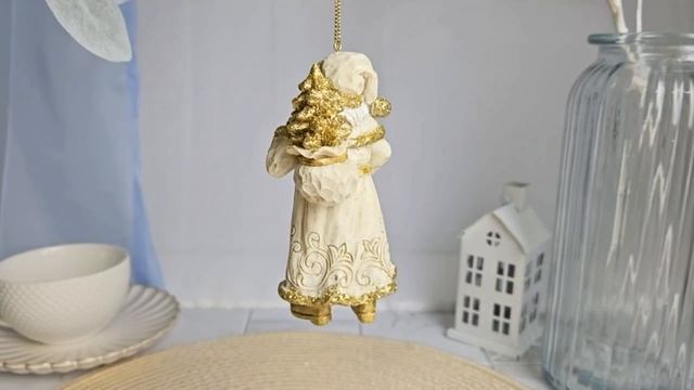 Ёлочная игрушка ДЕД МОРОЗ С НОВОГОДНЕЙ ЁЛОЧКОЙ, полистоун, 13 см, E0944-1