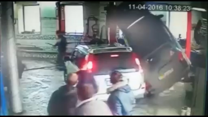Одним неловким движением снес авто на подъёмнике #дтп #авария #наружка