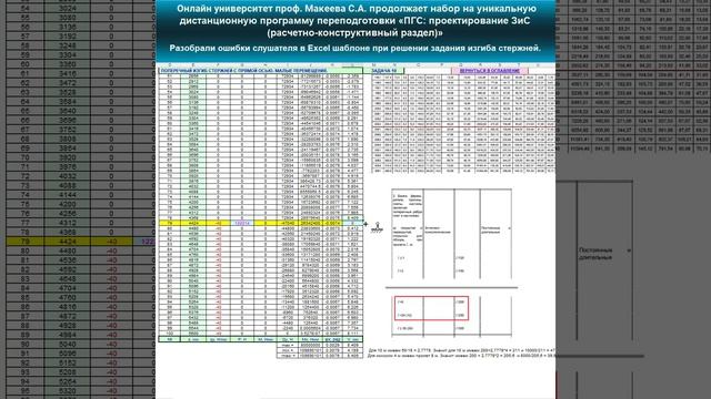 Разобрали ошибки слушателя в Excel шаблоне задания изгиба стержней. Университет проф. Макеева С.А.