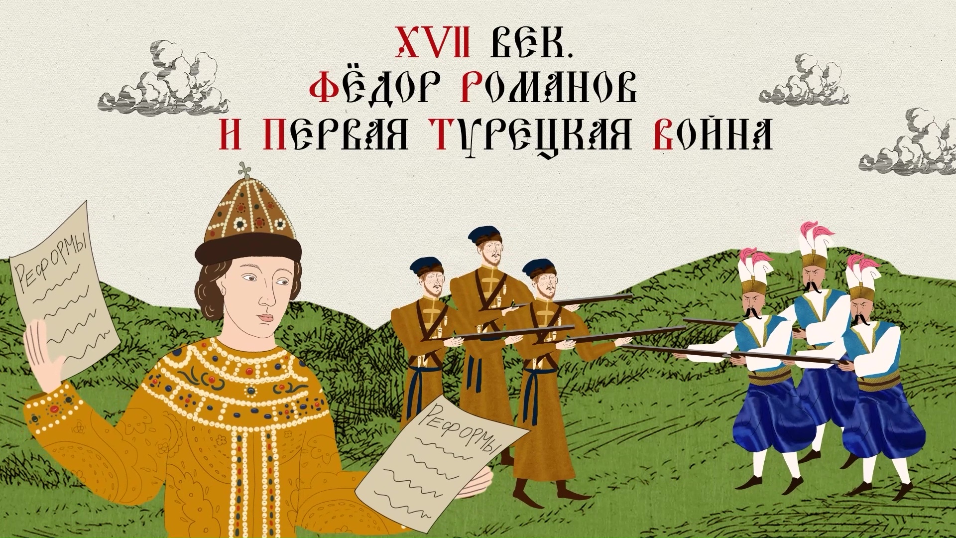 «XVII век. Фёдор Романов и первая турецкая война» Аннотация 1676 год. После скоропостижной кончины царя Алексея Михайловича на престол восходит его сын, 15-летний Фёдор. У молодого царя очень слабое здоровье, но он оказывается человеком деятельным и прогрессивным. Это очень быстро почувствуют его поданные. Свою энергию Фёдор Алексеевич направит во все сферы жизни. За 6 лет успеет сделать то, что не всем царям под силу: и законы переписать, и повоевать, и Москву перестроить. Посмотрев этот выпуск, вы узнаете: как Фёдор Алексеевич, ещё до Петра I открыл России форточку в Европу? Зачем посадил пальмы и развёл попугаев в Кремле? И как решил острый «южный» военный конфликт? Об этом и многом другом – в этой серии проекта «Русская история».