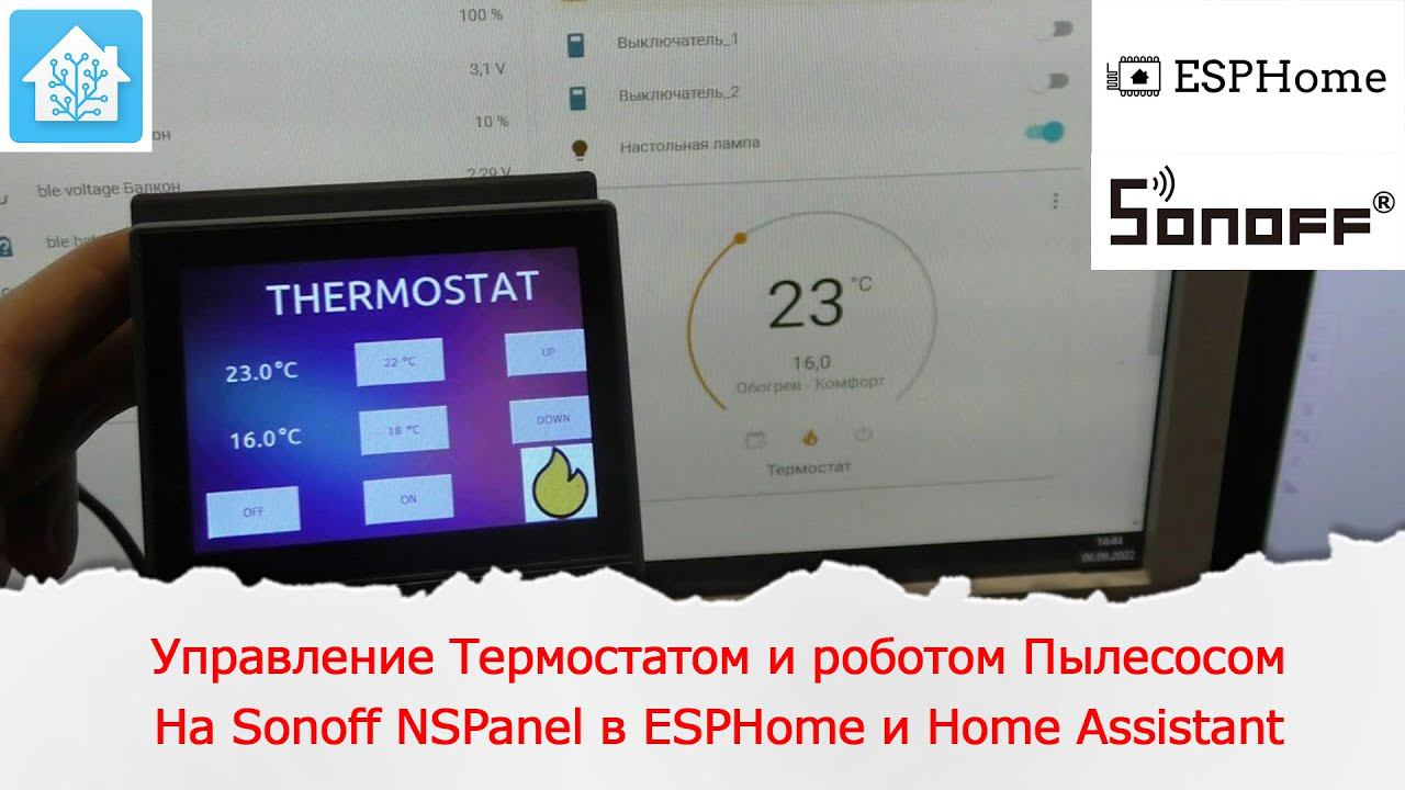 Управление Термостатом и Роботом пылесосом в Home Assistant с помощью Sonoff NSPanel и ESPHome