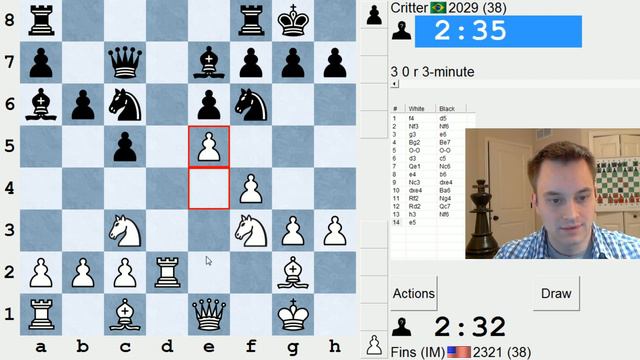 Support the channel: https://www.paypal.com/cgi-bin/webscr?cmd=_s-xclick&hosted_button_id=FURS92M5WXVCG Opponents include: GM Gil Popilski, GM Leonid Kritz, IM Claudio Minzer, Critter, T-rex, and Practice007. Final score: 5 wins, 3 losses.