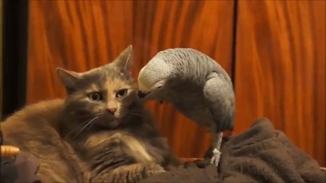 Попугай достает кота