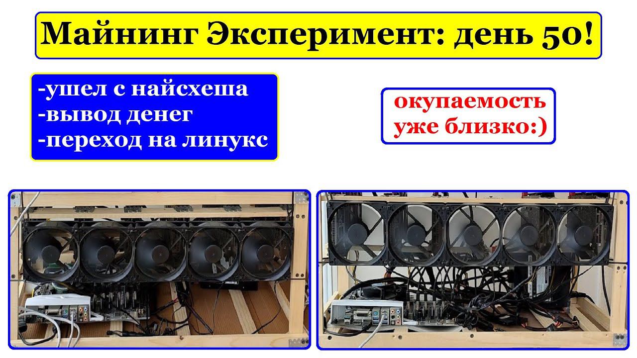 Майнинг Эксперимент день 50! Ушел с найсхеша, последний вывод денег, и переход на линукс.