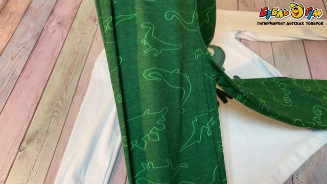 339394 Пижама Lanson Kids лонгслив и брючки с рисунком динозавров зеленая
