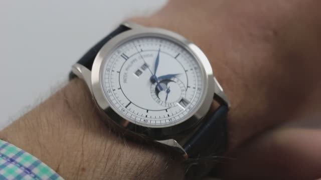 *перевести видео можно в Яндекс браузере Часовой механизм Annual Calendar 5396G-001 выполнен из белого золота с автоматическим подзаводом. Циферблат часов выполнен в виде секторного циферблата и заключен в корпус диаметром 38,5 мм. Эти часы имеют традиционные пропорции: их толщина составляет 11,5 мм, а расстояние между выступами составляет 47 мм с красиво скошенными выступами. Смотрите наш полный обзор, чтобы получить более подробную информацию об этом ежегодном календаре Patek Phlippe Complications!