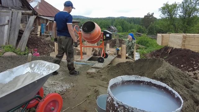 Переехали на Алтай в деревню. Заливаем фундамент под баню.