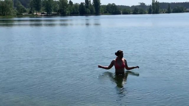 Купальщица в майской природной воде.