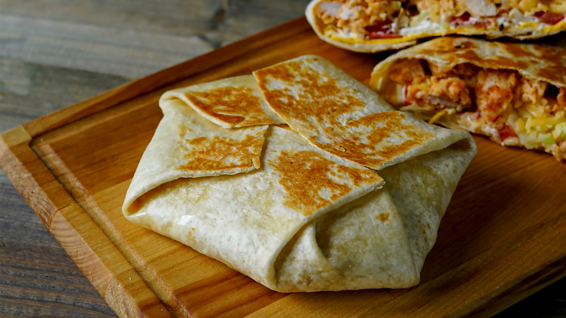Ингредиенты: большой лаваш - 2 шт маленький лаваш - 2 шт фарш - 300 гр кетчуп - 2 ст.л капуста - 100 гр помидор - 1 шт сыр - 100 гр творожный сыр - 3 ст.л соль, перец по вкусу 1. Фарш готовьте 8-10 минут, добавьте кетчуп, соль, перец и готовьте еще 1-2 минуты 2. Нарежьте помидоры, капусту нашинкуйте, сыр натрите 3. На середину большого лаваша выложите курицу, затем сыр, капусту и помидоры 4. Маленький лаваш смажьте творожным сыром. 5. Начинку накройте лавашом стороной смазанной сыром 6. Заверните лаваш по кругу 7. Обжарьте с двух сторон до золотистой корочки Приятного аппетита!