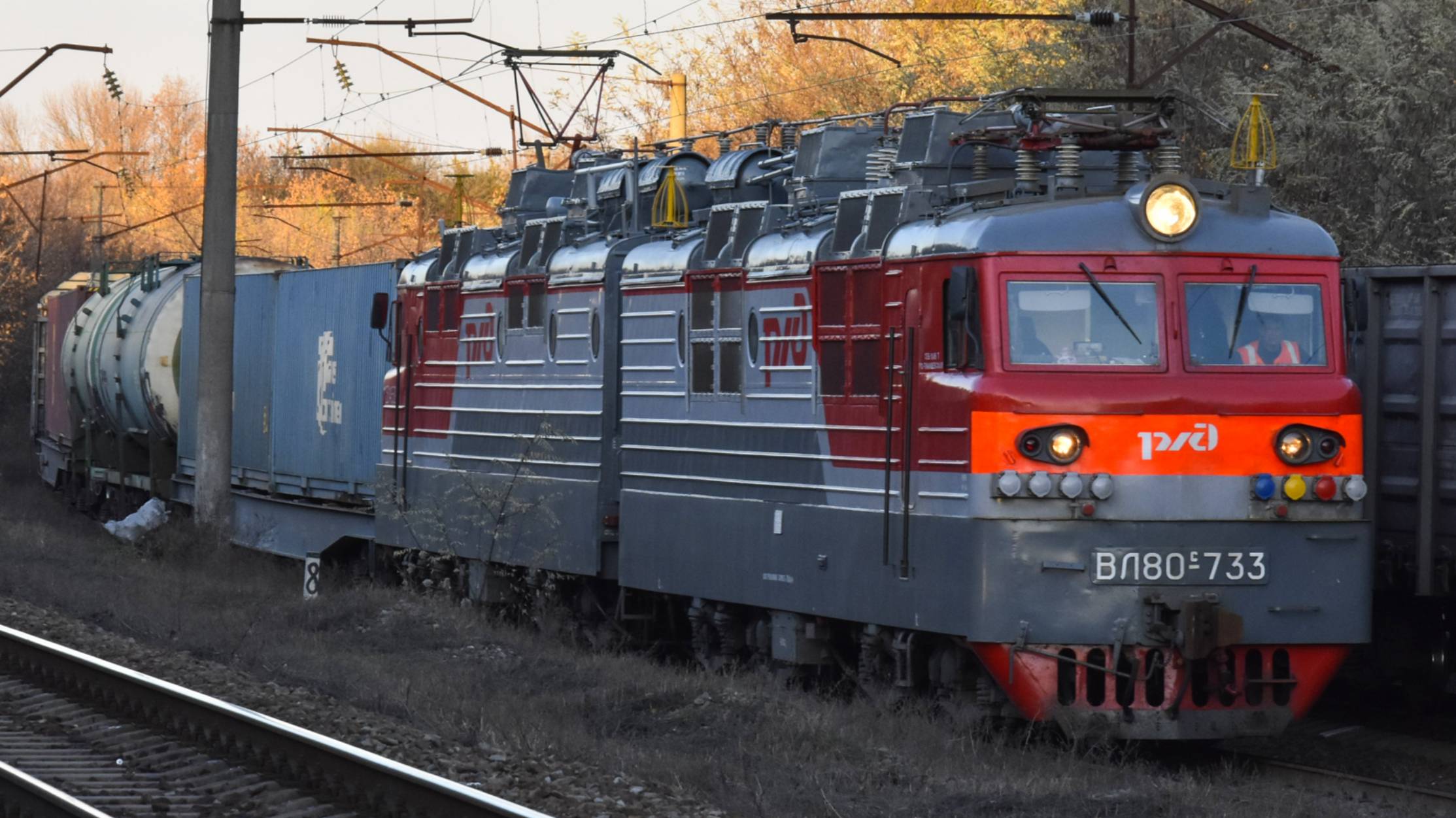 Электровоз ВЛ80с-733 на закате выходит с поездом из Батайска осенью 2021 года. Все видео созданы мной в рамках проекта Путешествия и Транспорт