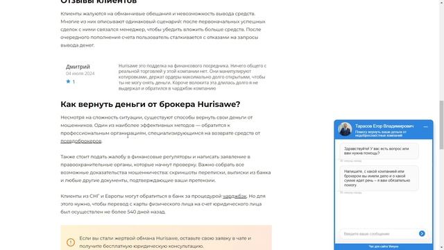 Обзор брокера Hurisawe (hurisawe.pro, huri-saw.cc), реальные отзывы трейдеров. Это очередной лжеброкер мошенник? Как вернуть свои деньги от Hurisawe? Помогите мне если вы стали жертвой финансовых мошенников: брокеров, казино, подставных криптобирж или купили онлайн-курс, который не оправдал ожиданий, свяжитесь со мной в телеграме https://t.me/DengiVernite