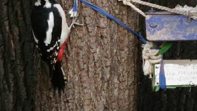 Дятел кушает грецкие и кедровые орехи.mp4
