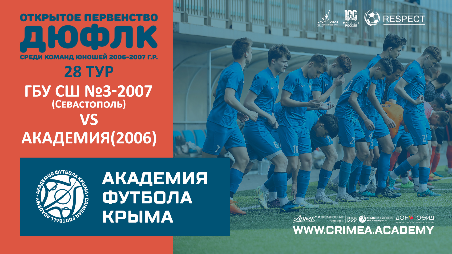 Матч двадцать восьмого тура Открытого первенства детско-юношеской футбольной лиги Крыма среди юношей 2006-2007 г.р. (2022/2023): ГБУ СШ №3 по футболу-2007 (Севастополь) - Академия футбола Крыма (2006) Наш сайт: https://www.crimea.academy/ Академия футбола Крыма – это большая футбольная семья, которая открыта для общественности и готова к взаимному сотрудничеству, обмену опытом и профессиональному общению. Наша цель – подготовка качественных и конкурентоспособных футболистов с учетом современных требований, а также образованных и всесторонне развитых членов современного общества. Наша приоритетная задача – отбор детей, проявивших выдающиеся способности в области футбола для совершенствования их спортивного мастерства. Команды Академии ориентированы на атакующий и зрелищный футбол, в котором удовольствие получает не только сам игрок, но и зритель. При этом интересы команды не должны идти в ущерб задаче воспитания отдельного футболиста. В основе воспитания юных футболистов в нашей Академии лежит принцип – "подготовка игрока, а не команды". #футбол #спорт #СвернёмГоры #football #soccer #sport