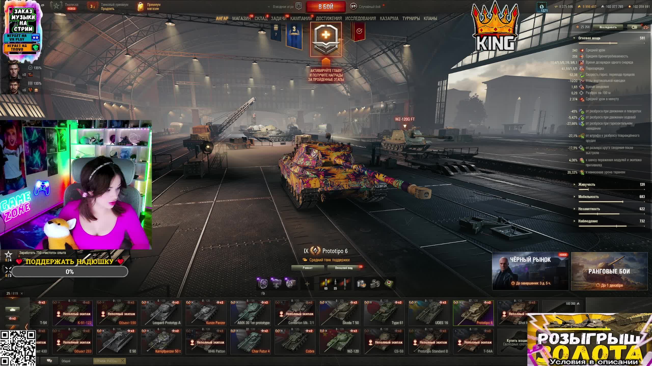 Условия: 1) Для заказа танка, вы пишите в чате название и уровень техники, на которой хотели бы чтобы стример выехал ( Не забывайте, что у меня не один чат, наберитесь терпения, если я не выкатываю именно ваш! 🤗 вас много, а я одна, стараюсь чтобы в каждом чате участвовали). 2) если не хотите ждать очереди для заказа танка, то можете указать его через донат , таким образом ваш танк пойдет вне очереди, в рядах первых) ! 3) Челленджи только через донат ( любой ). Если я не выполняю, то каждому кто закажет челлендж через донат, отправлю 500 голды! ❎ Поддержать Надюшку ▶ https://www.donationalerts.com/r/niagaragames ДЛя стран СНГ и Европы: https://new.donatepay.ru/@NIAGARAGames _______________________________________________ ❎ ТВИЧ https://www.twitch.tv/niagaragame ❎ ТРОВО https://trovo.live/_NIAGARA_ ❎ VK Play https://vkplay.live/_niagara_ ❎ БУСТИ https://boosty.to/_niagara_ ❎ ТЕЛЕГРАМ https://t.me/The_NIAGARA ❎ ДИСКОРД https://discord.gg/cS7d3mCvqf ❎ Группа в ВК https://vk.com/club204790222 _________________________________________________ ЗАПРЕЩЕНО (за подобное уходите в бан): - реклама своего или иного канала; - оскорбления, унижения участников чата и стримера; - обсуждение политики. #миртанков #niagara #stream #wot #girlstreamer #WorldofTanks #стримwot #стримерша #стримтанки
