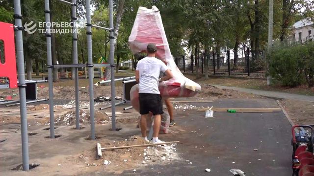 В парке культуры и отдыха «Пегас» идёт монтаж современной детской площадки