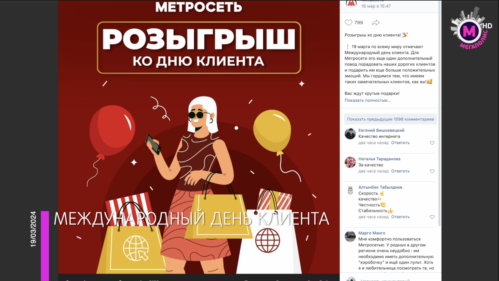 Март радует нас не только приходом весны, но и замечательными праздниками. Совсем недавно мы отмечали 8 Марта, а 19 марта, отмечается ещё один международный праздник - День клиента. Подробности в сюжете.