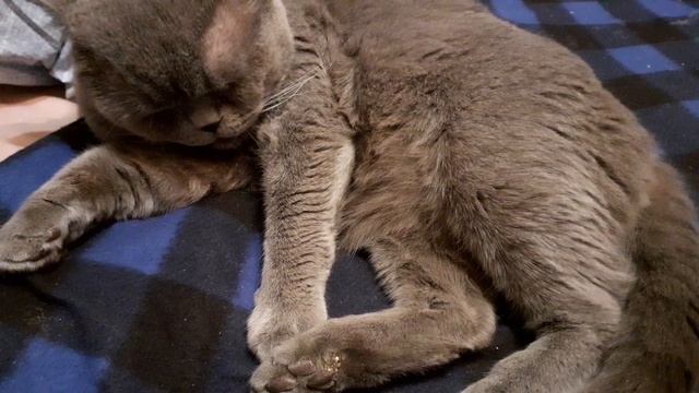 Моется котик на диване, дома тоже хорошо.