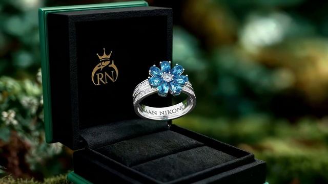 Кольцо Цветик из белого золота с бриллиантами и топазами