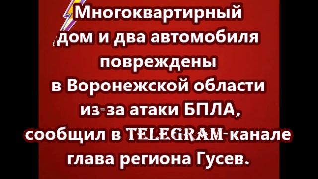 Многоквартирный дом и два автомобиля повреждены в Воронежской области из-за атаки БПЛА, сообщил в Telegram-канале глава региона Гусев.