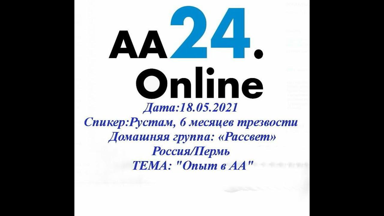 18.05.2021 Рустам, 6 месяцев трезвости Россия/Пермь Домашняя группа: «Рассвет»ТЕМА: «Опыт в АА»