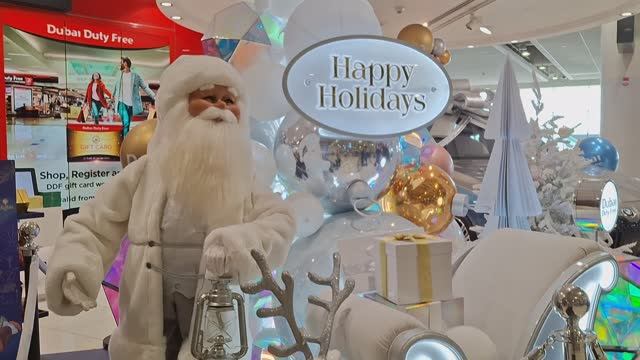 Дубай. Арабские Эмираты. Аэропорт Новогодний. Дед Мороз и подарки радуют детей и взрослых