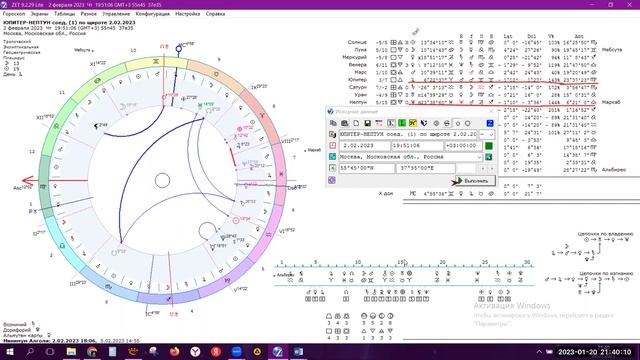 О соединении Юпитера и Нептуна по широте. И о новолунии 21.01.2023