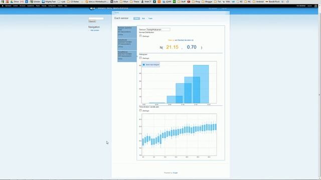 This web-app, powered by NodeJS, shows a flow of NfcV sensor-scans in real-time (max delay ~ a few hundred milliseconds after scanned by Nexus S). Demo starts with values from a real NfcV sensor. After that a fake streamer bursts 100 values per second (with uniform distro). Values are streamed to NodeJS via socket, then WebSocket to web frontend for calculations and plotting using HTML5 JS libs.